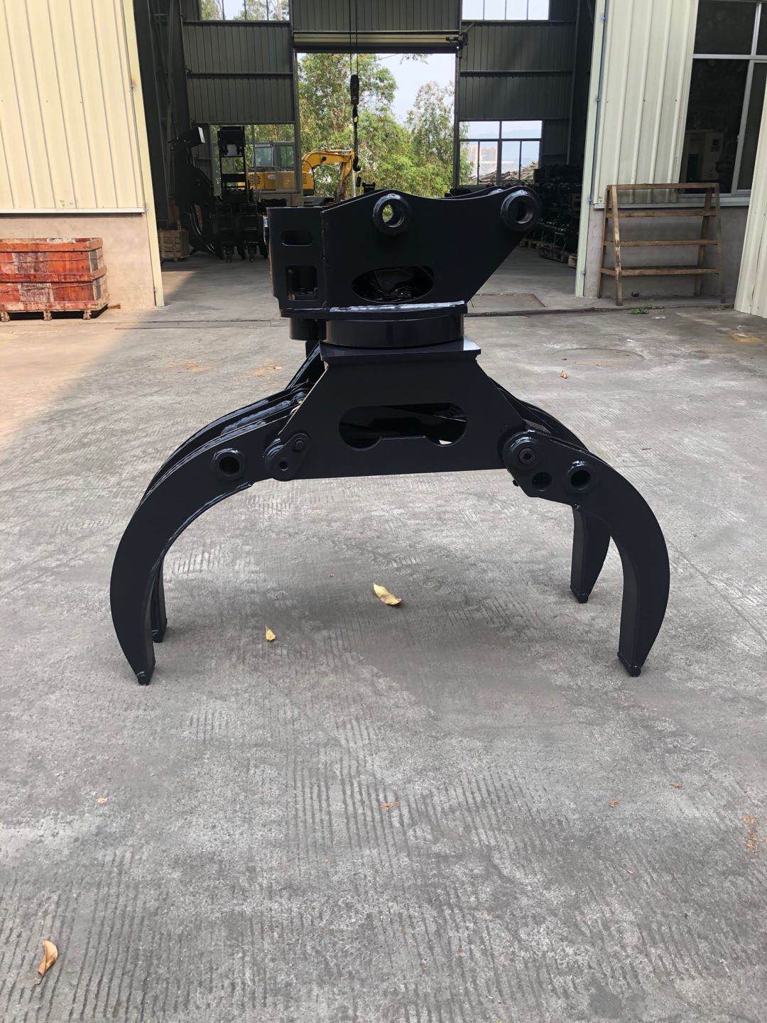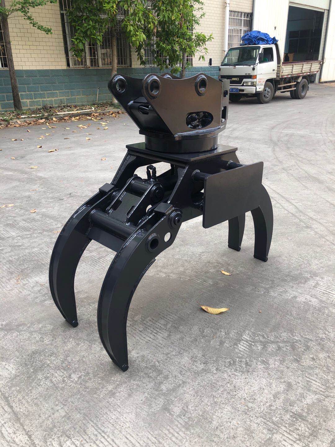 抓木器由特殊Q355B錳鋼材質鍛造加工經拋丸處理,可進行木材、甘蔗裝卸,石頭、鋼材等堅硬物質抓取,廢棄物作業(yè)等各種夾裝操作,具有抓取量大、質地輕,強度高,耐磨性強、操作簡單輕 便等特點,同時采用先進的單油缸直齒式直立式馬達回轉裝置,馬達帶緩沖保護閥、油缸裝有壓力保持閥、多重液壓保護裝置,結構合理,使用效果好、壽命長,抓木器現有固定夾、液壓腳踏控制、電控手柄控制三種,電控控制-配合自主研發(fā)的雙手柄電控系統(tǒng),改裝簡便,操作動作順暢,抓取軌跡曲線科學合理,適合多元化品牌挖機改裝!
